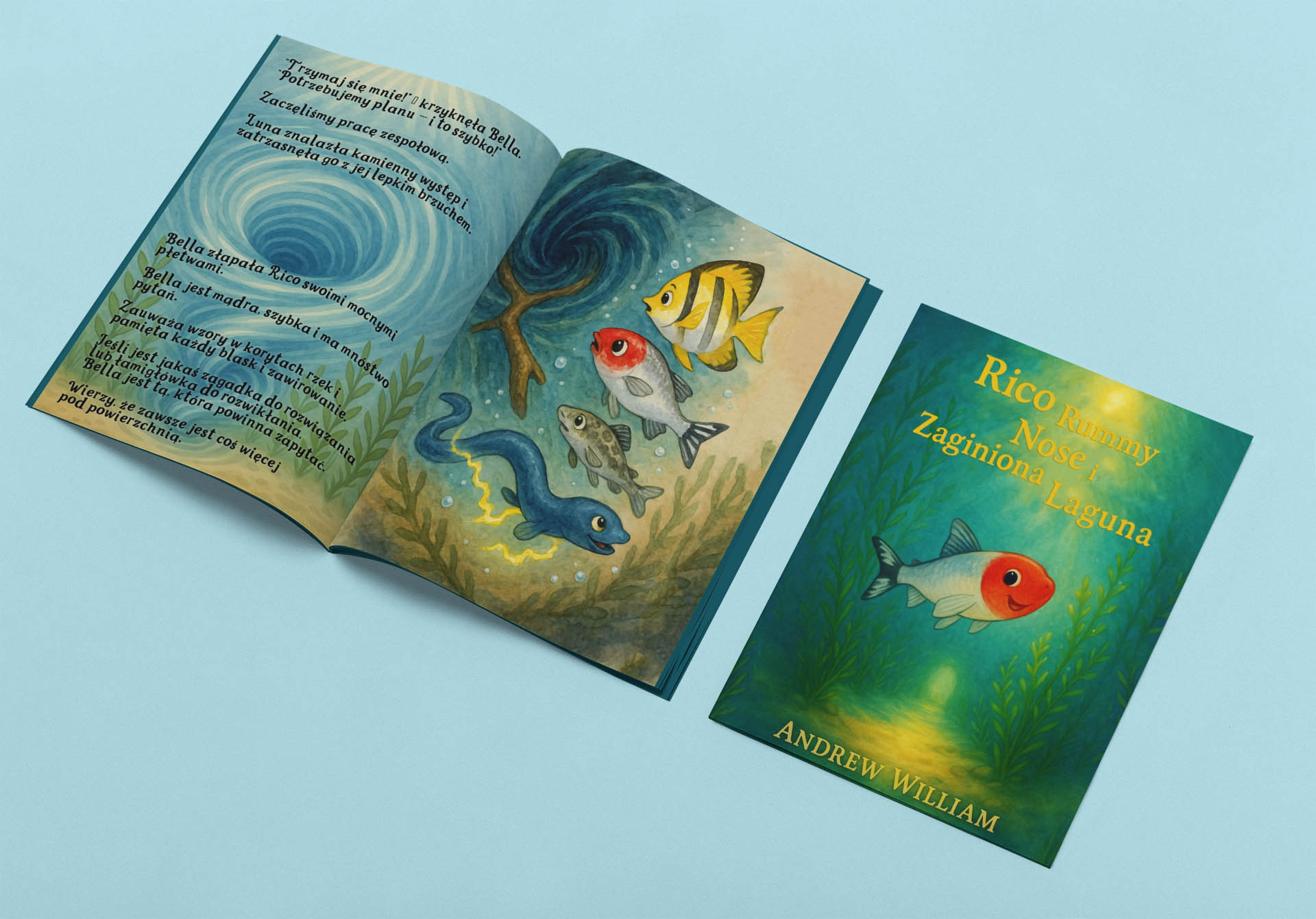 Dołącz do Rico, małej, pełnej przygód rybki o świecącym czerwonym nosie, która wyrusza w niezapomnianą podróż w magicznym podwodnym świecie. W książce Rico Rummy Nose i Zaginiona Laguna autor Andrew William snuje wzruszającą opowieść o przyjaźni, odkryciach i cudach świata przyrody.